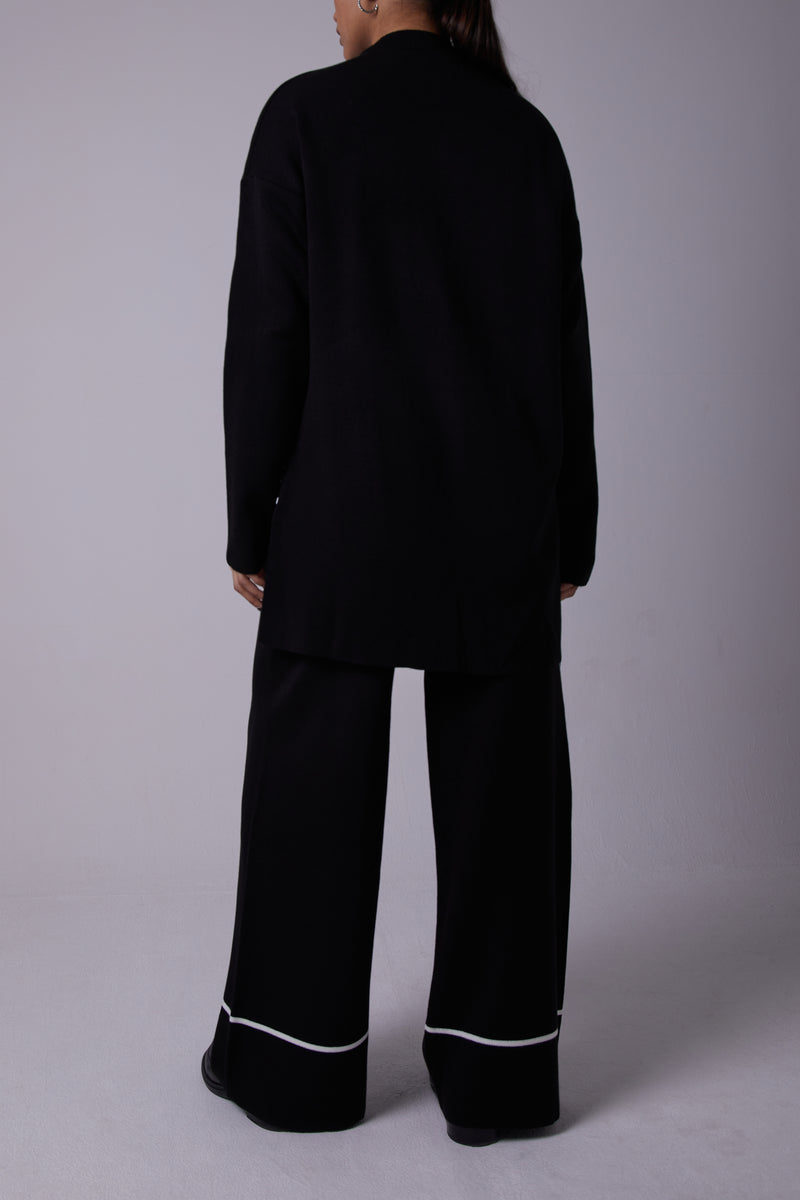 Black striped knit set with a relaxed feel that adds a luxurious touch to your wardrobe that works well as a set together and can also be styled individually.