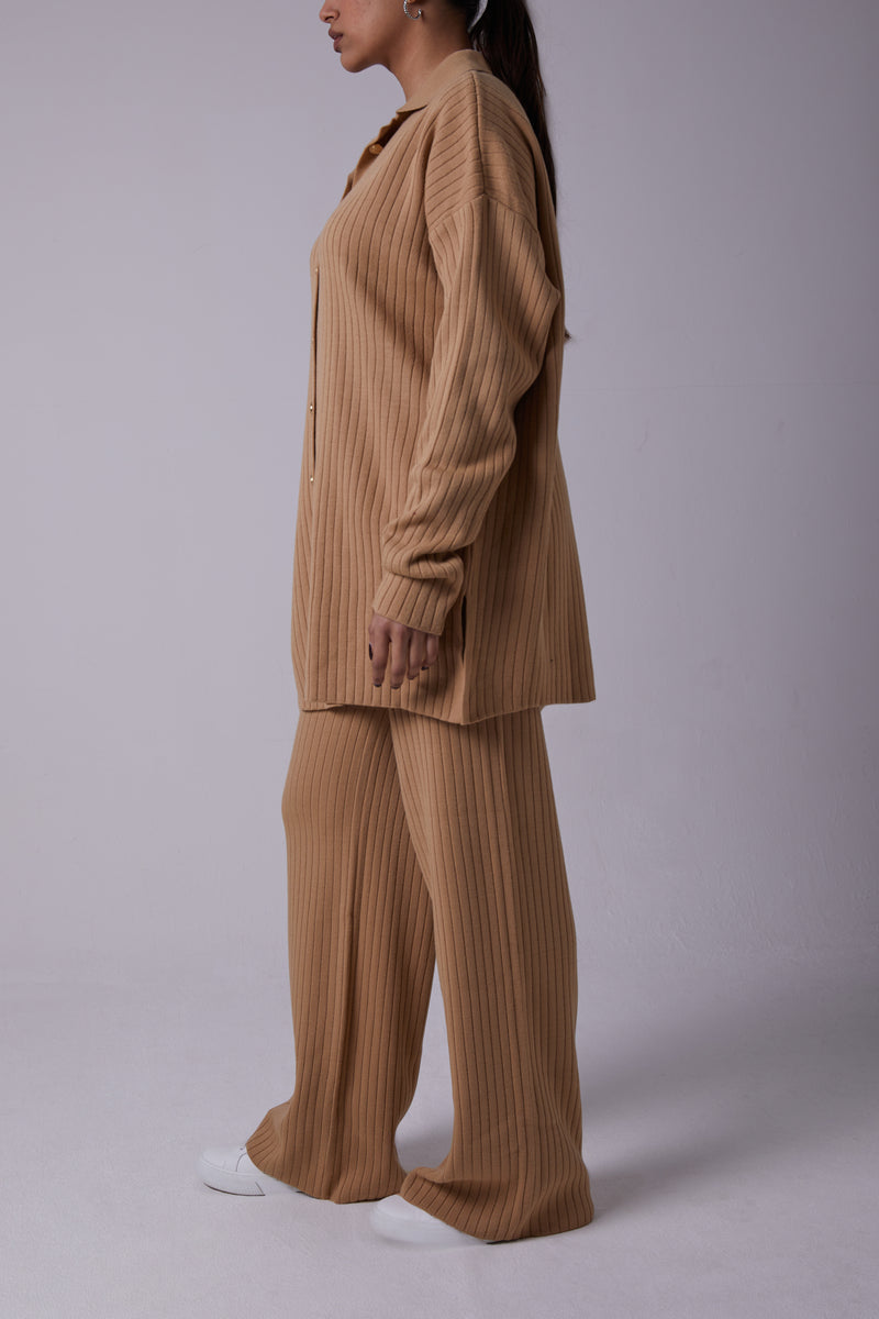 Oversized camel knit set with a relaxed feel that adds a luxurious touch to your wardrobe that works well as a set together and can also be styled individually.
